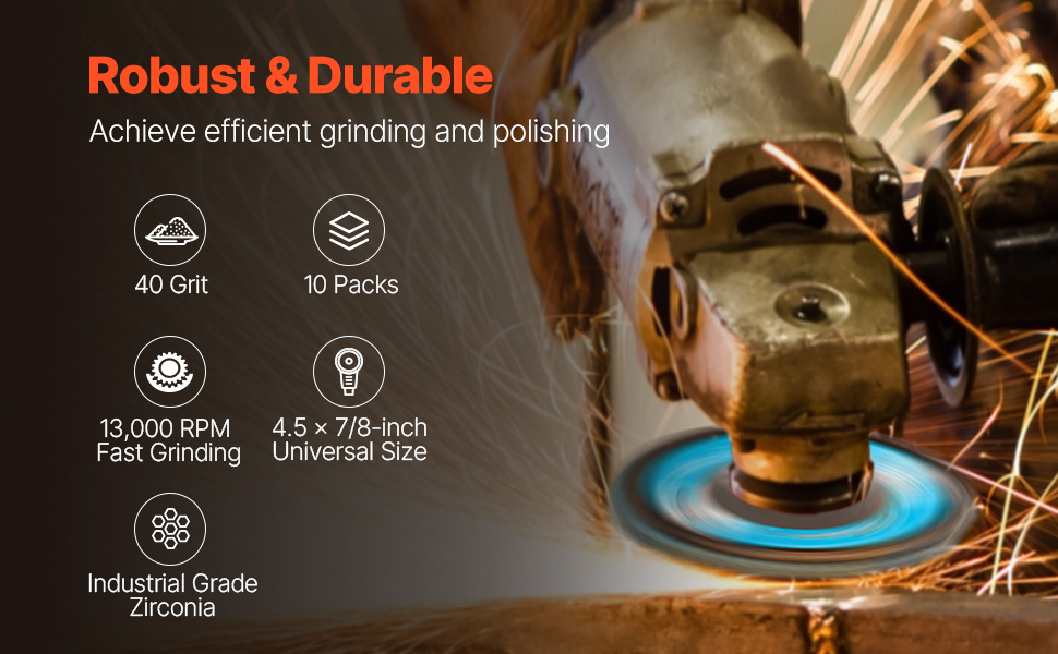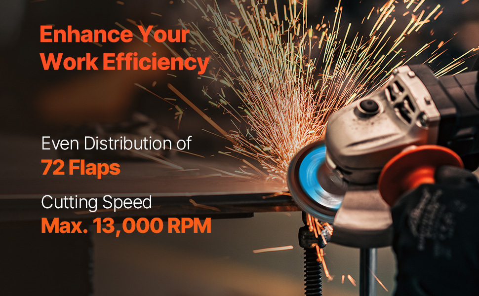 Our zirconia flap discs features a 4-1/2-inch diameter and a 7/8-inch arbor size, ensuring compatibility with angle grinders and supporting a maximum speed of 13,300 RPM for efficient performance.